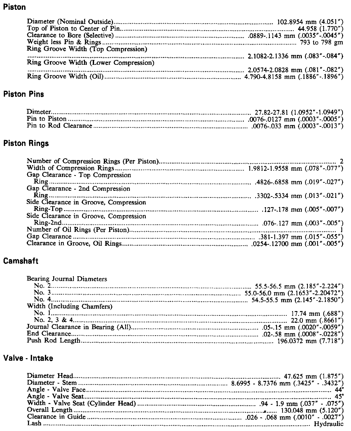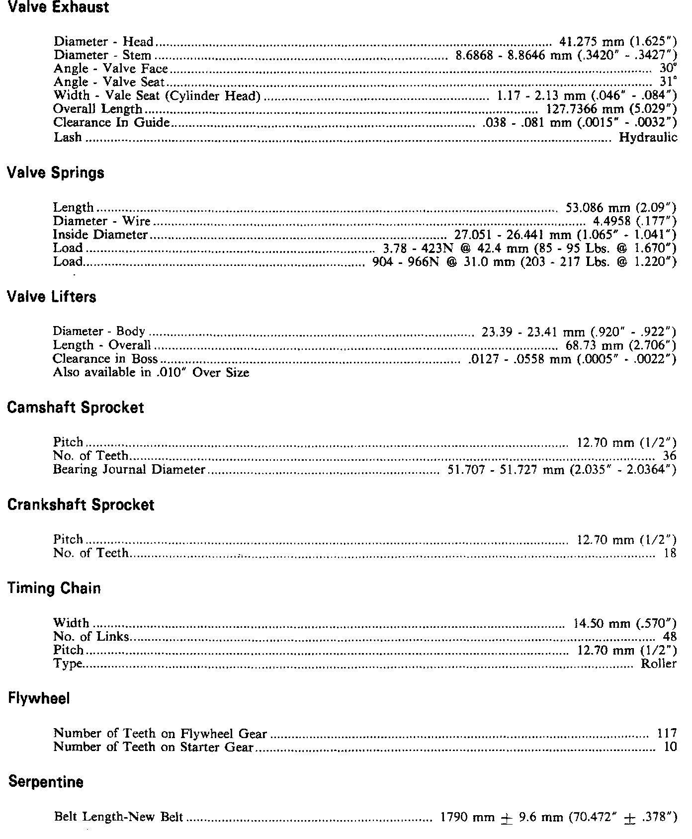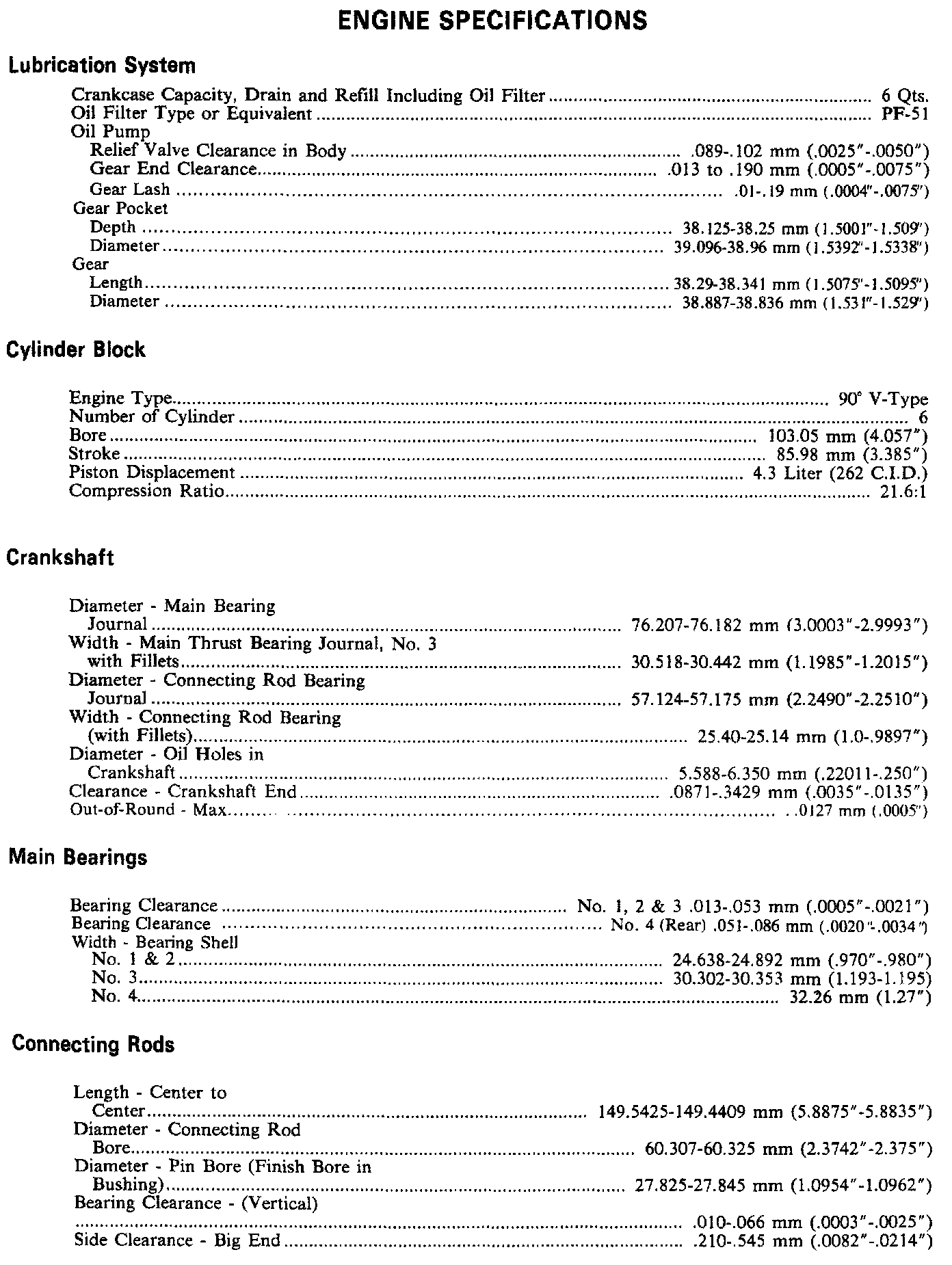 Engine Specifications: