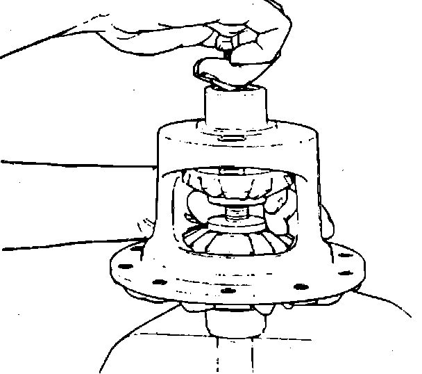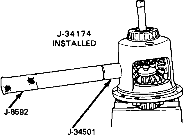 12. Position pinion gears in case. Rotate differential case with suitable tool until pinion gear holes align with case bores.
