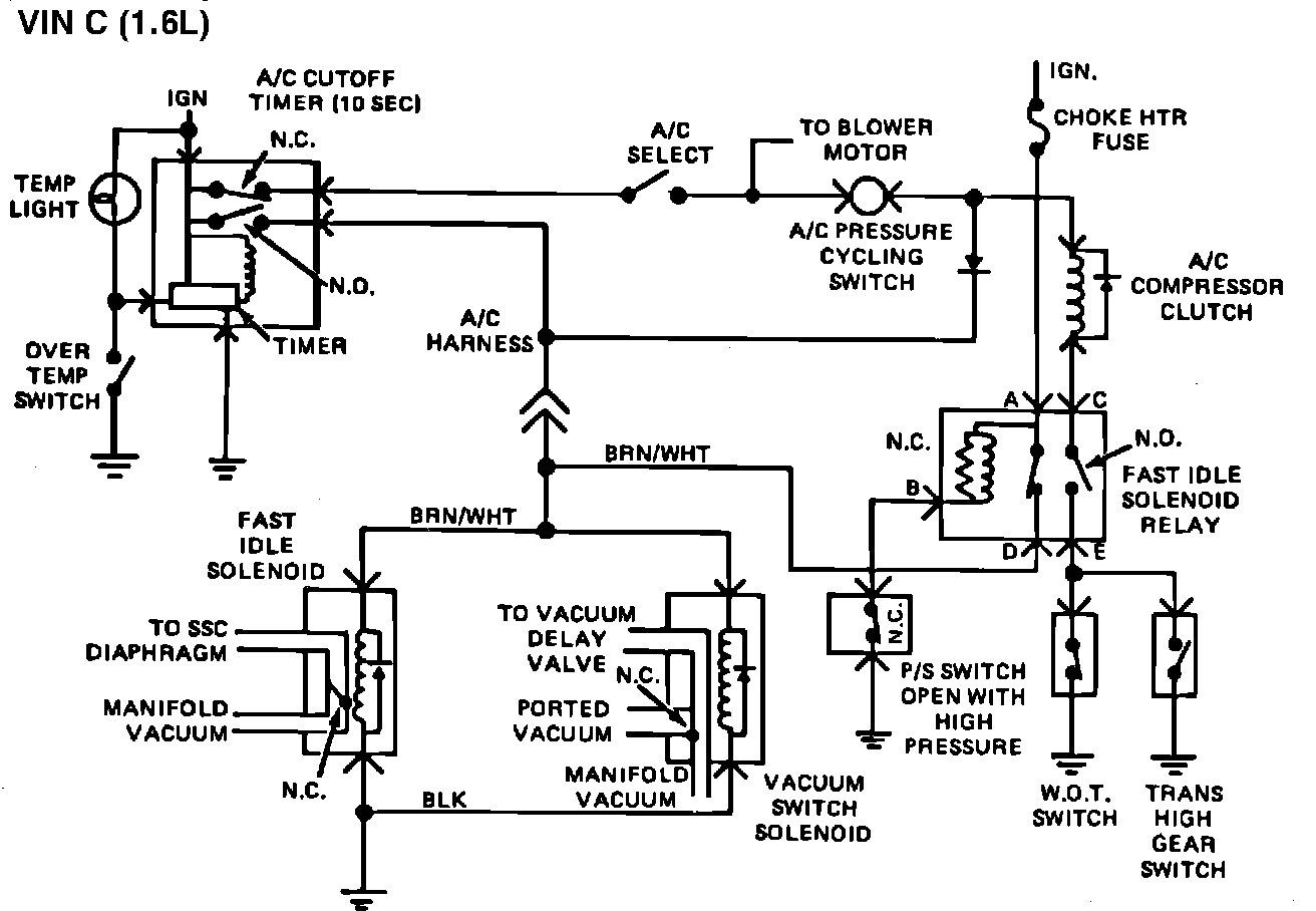 5. Checks continuity from vacuum switch solenoid to Fast Idle Relay (terminal C)