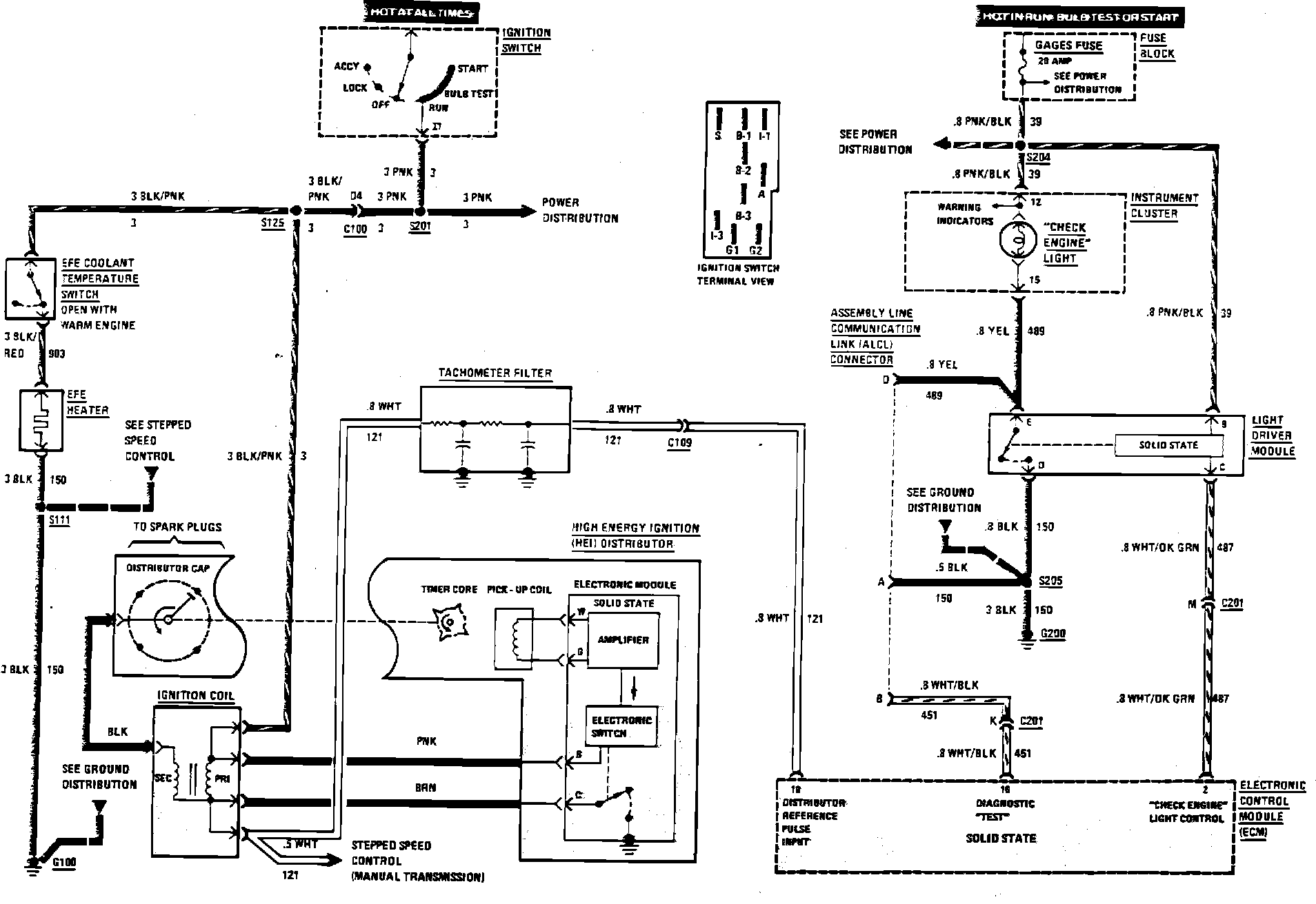 Computer Command Control (Check Engine Light & Ignition System) Wiring Circuit:
