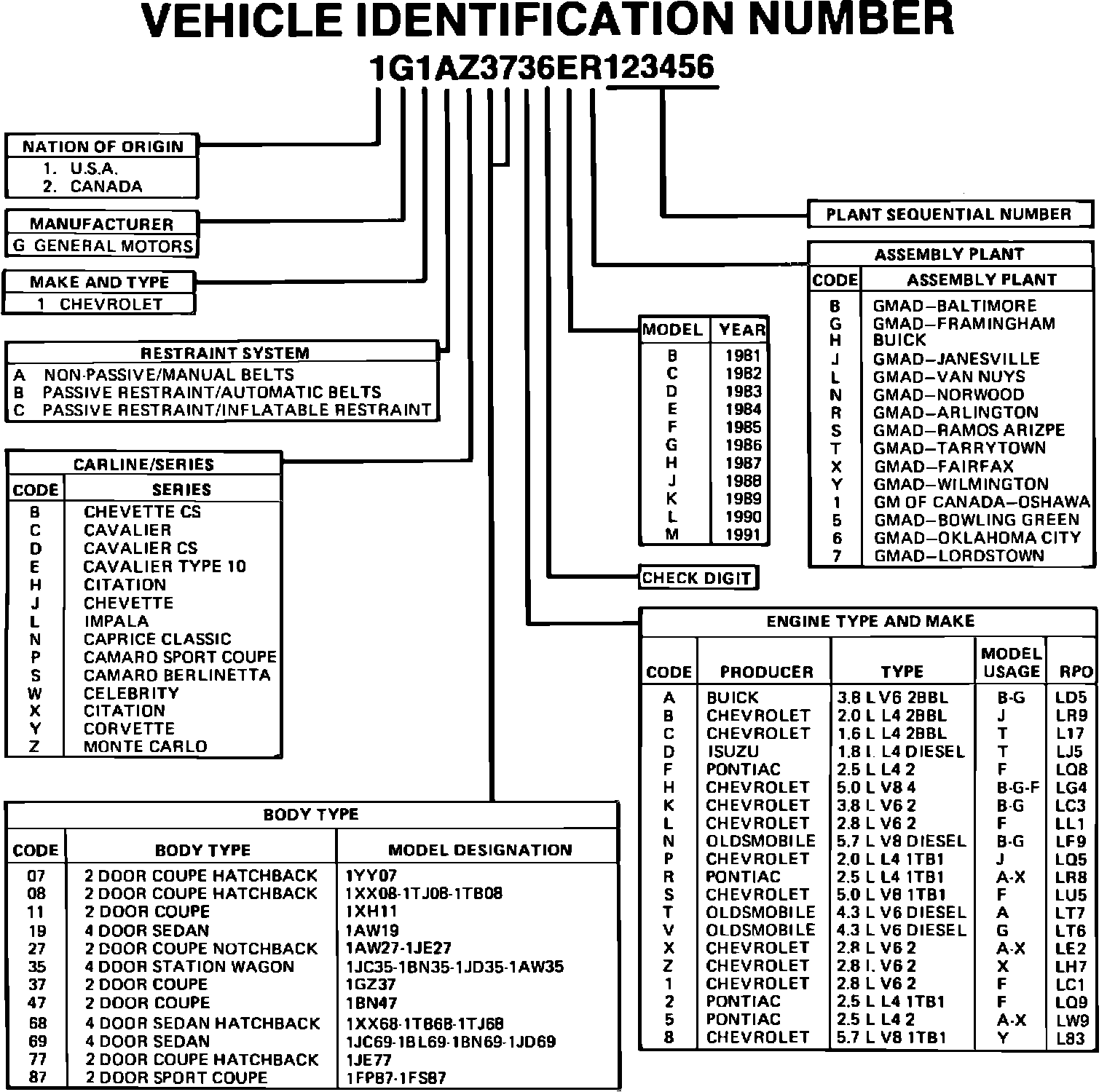 PASSENGER CAR VEHICLE IDENTIFICATION NUMBER