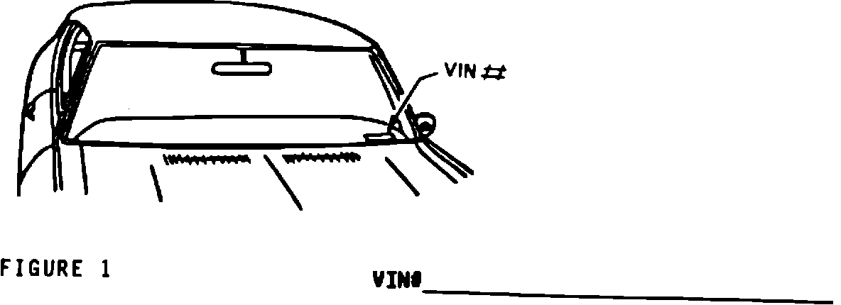 1. Write in the Vehicle Identification Number (VIN) of the car or cars in which you need the longer belt. The VIN is located on the left front top surface of the instrument panel and is visible from the outside of the car. Note the VIN below.