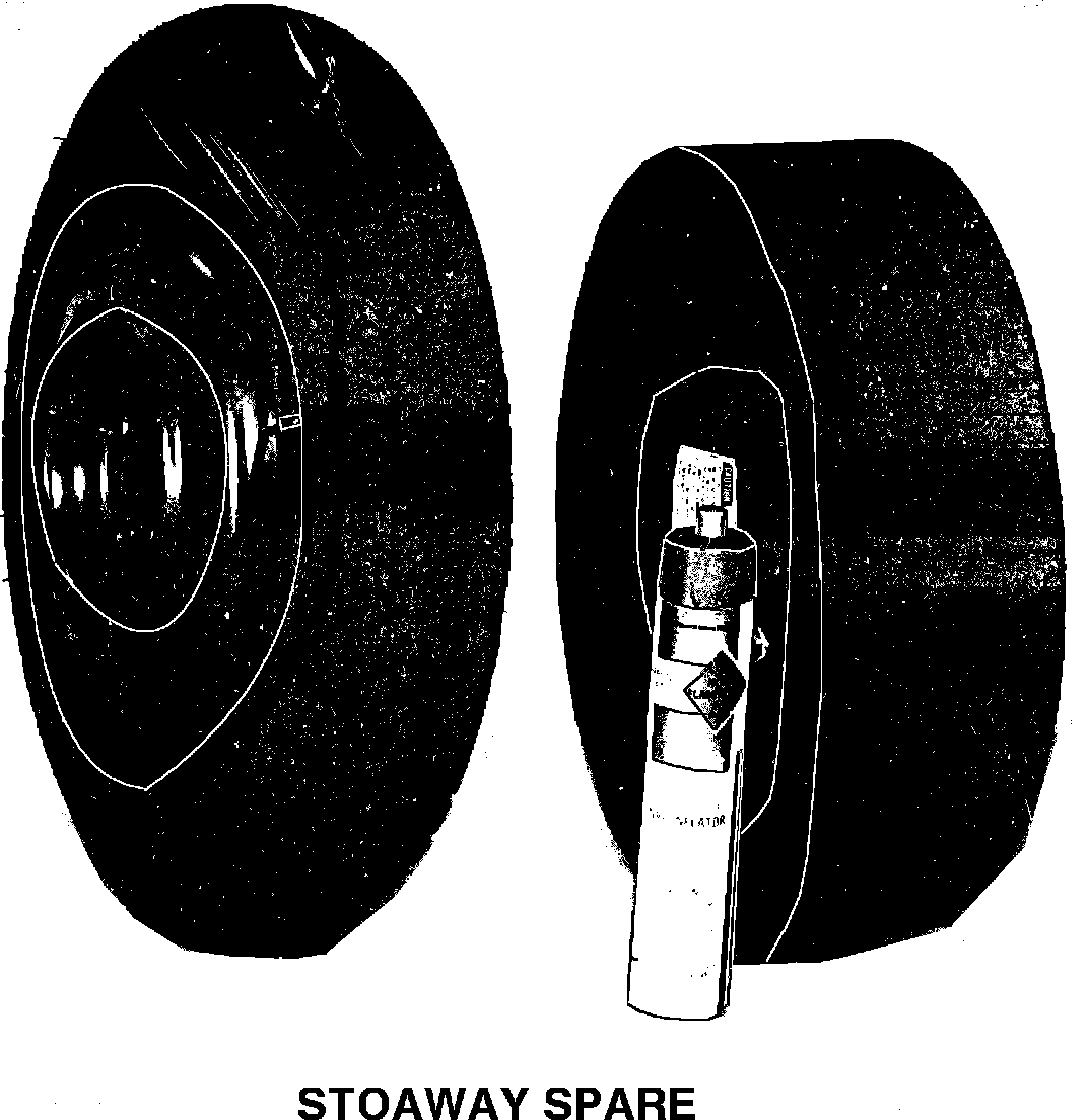 1. The stowaway (folding) spare is used in Camaros with limited slip differentials. This is because these vehicles require spares which, when properly inflated, are the same diameter as the road tires. To provide proper stowage for such a "large" spare, the stowaway spare must be used.