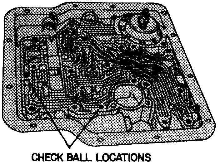 4. Remove the two check balls from transmission case and note location for reassembly, see image.