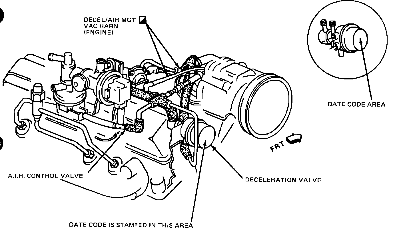 2. Inspect deceleration valve for date code, (refer to illustration) for location.