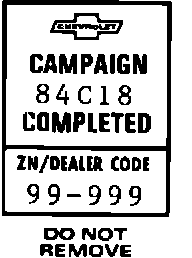 Each vehicle modified in accordance with the instructions outlined in this Product Campaign Bulletin will require a "Campaign Identification Label". Each label provides a space to include the five digit dealer code of the dealer performing the campaign service. This information may be inserted with a typewriter or ballpoint pen.