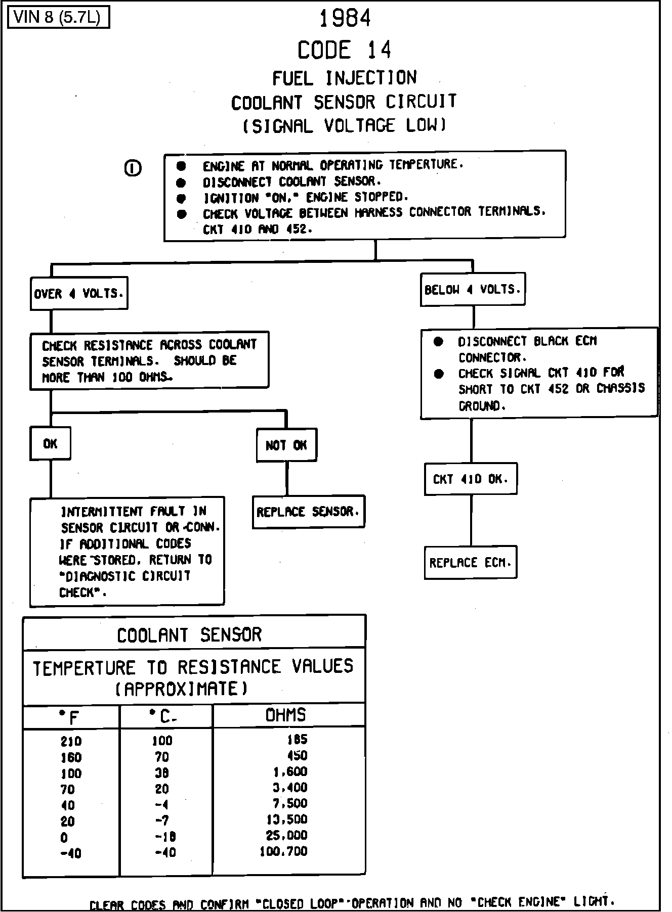 CODE 14, COOLANT SENSOR (SIGNAL VOLTAGE LOW)