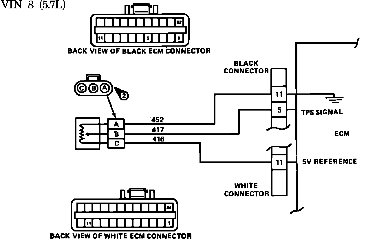 Fig. 002 - Wiring Diagram for Code 21 Throttle Position Sensor. (Signal Voltage High):