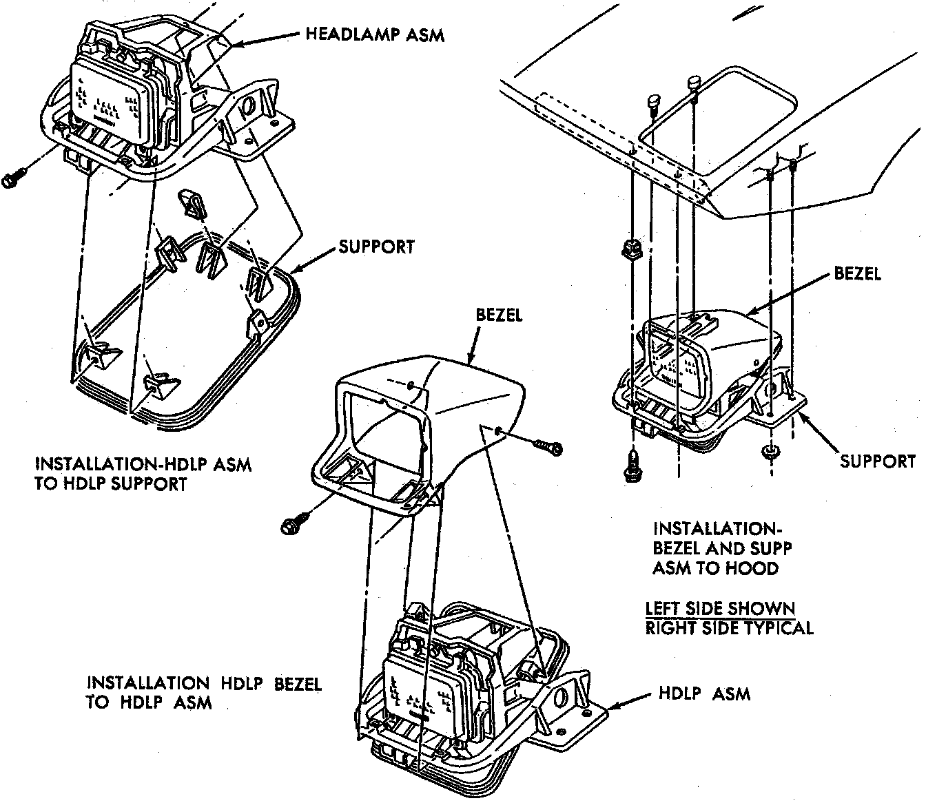 4. Remove 2 (two) screws) headlamp assembly to hood (at front of headlamp)
