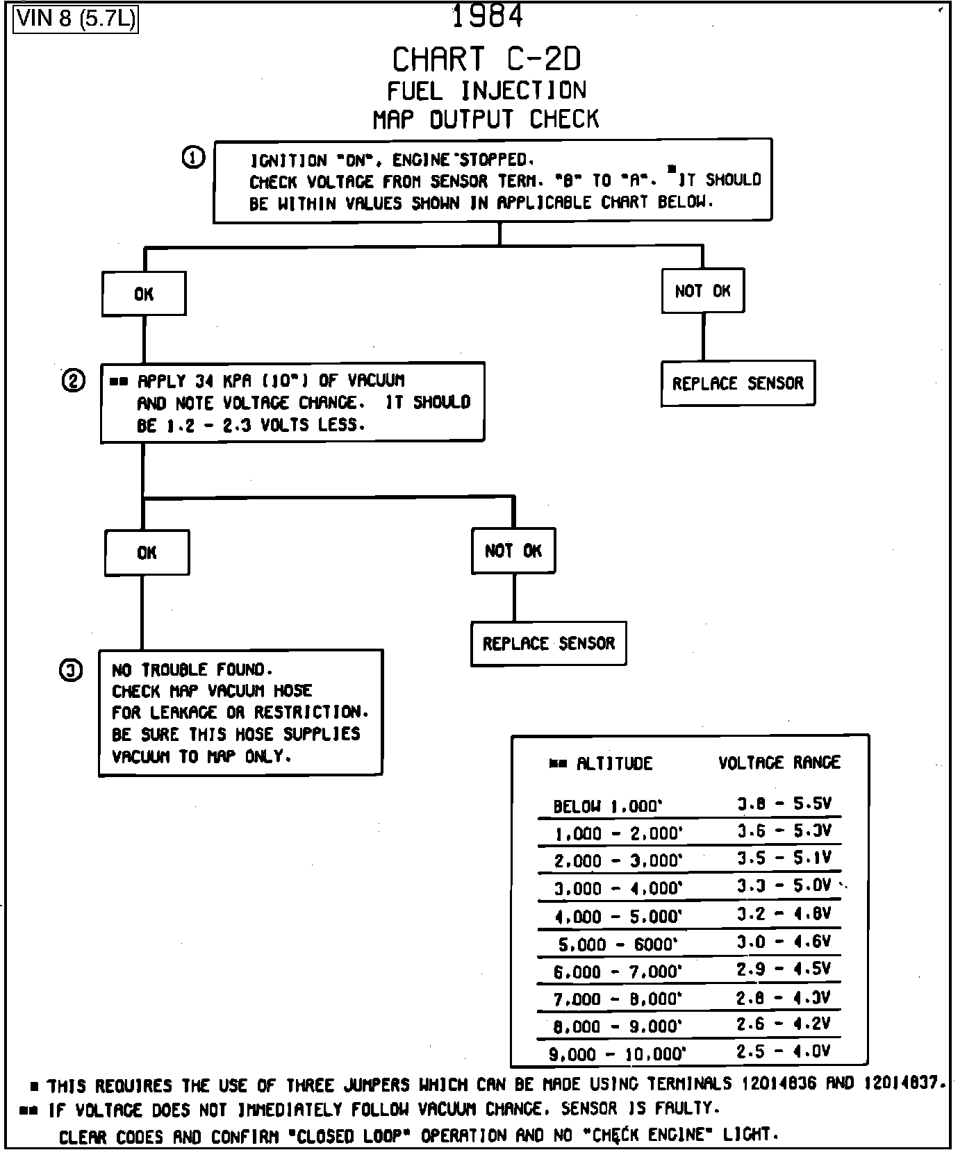 1. Checks MAP sensor output voltage to the ECM. This voltage, without engine running, represents a barometer reading to the ECM.