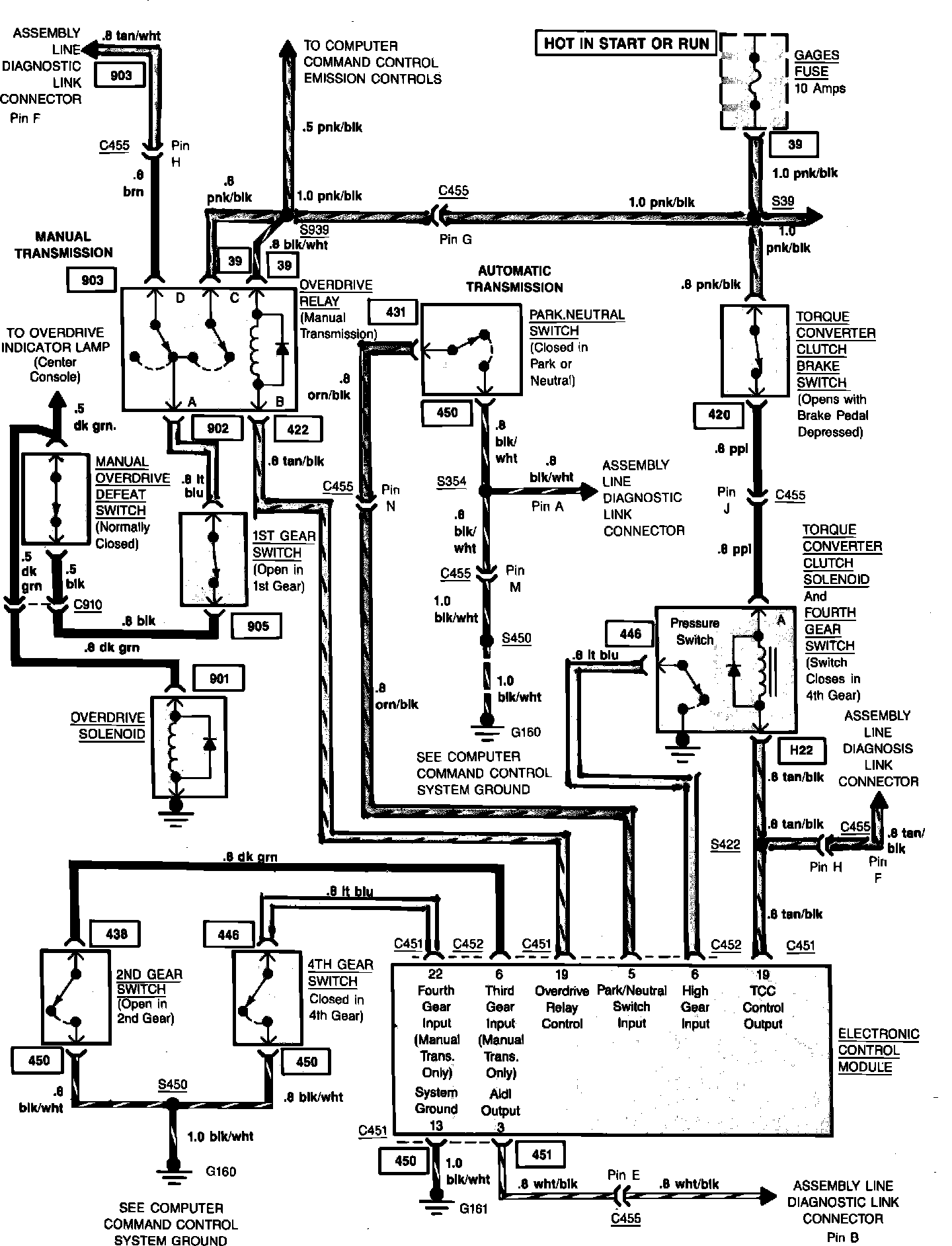Computer Command Control Wiring Circuit (Manual Overdrive & Torque Converter):