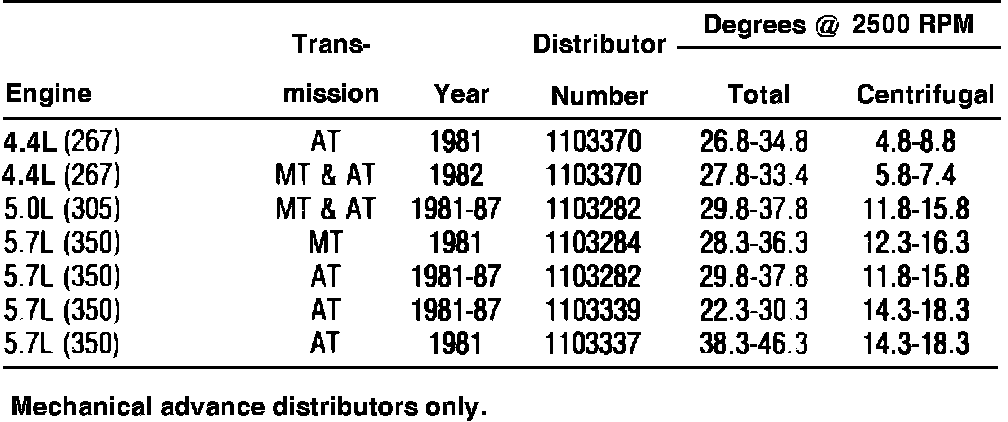Distributor Timing Advance Specifications: