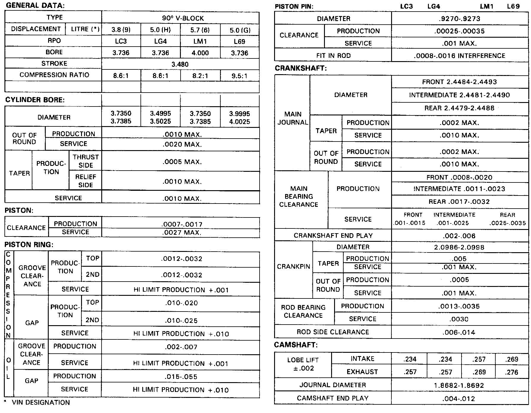 Full Size Chevrolet V6-231 3.8L VIN A