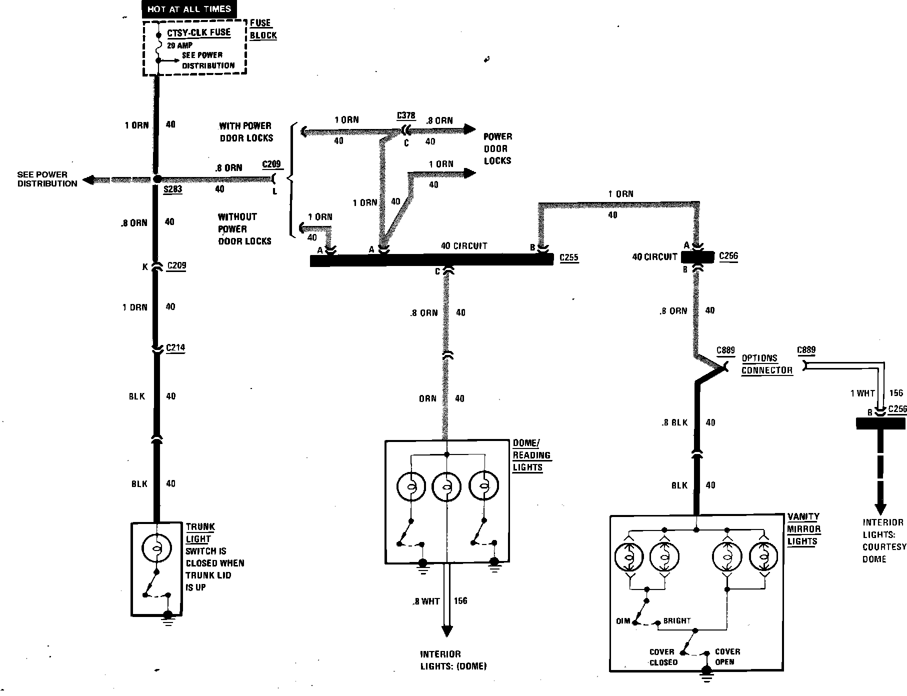 Interior Lighting (Trunk/Reading/Vanity) Wiring Circuit: