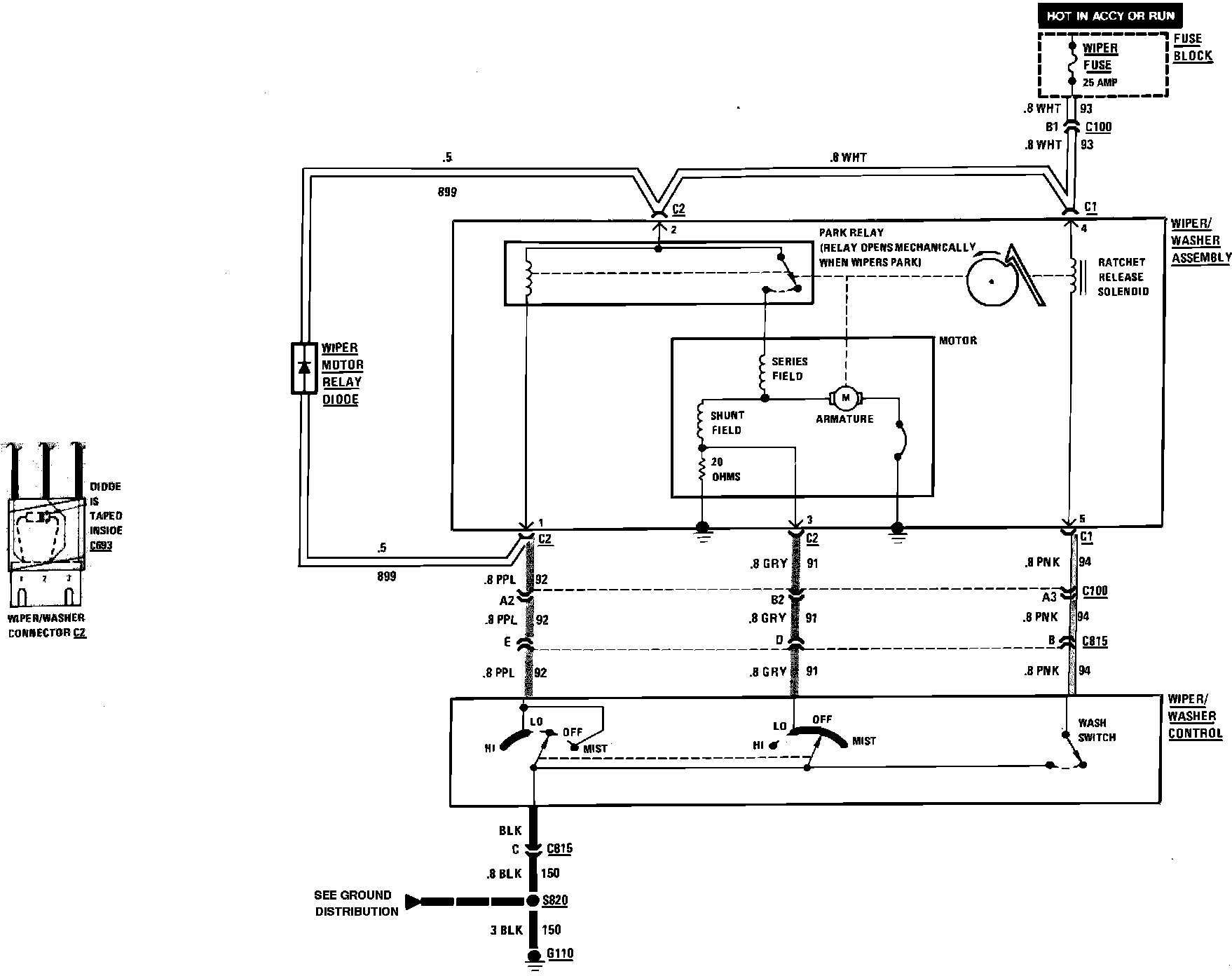 Wiper/Washer (Less Pulse) Wiring Circuit: