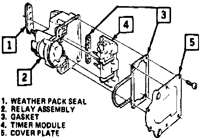 The glow plug control module, Fig. 5, is an integral assembly that includes the timer functions, lamp switch and glow plug relay. The control module serves the following functions: