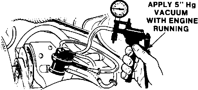 5. With the engine still running and the vacuum pump still connected, apply 5" Hg. vacuum and observe the gage (refer Figure 4). If the valve does not hold vacuum for at least 20 seconds, replace the valve. Otherwise, the valve is functional.