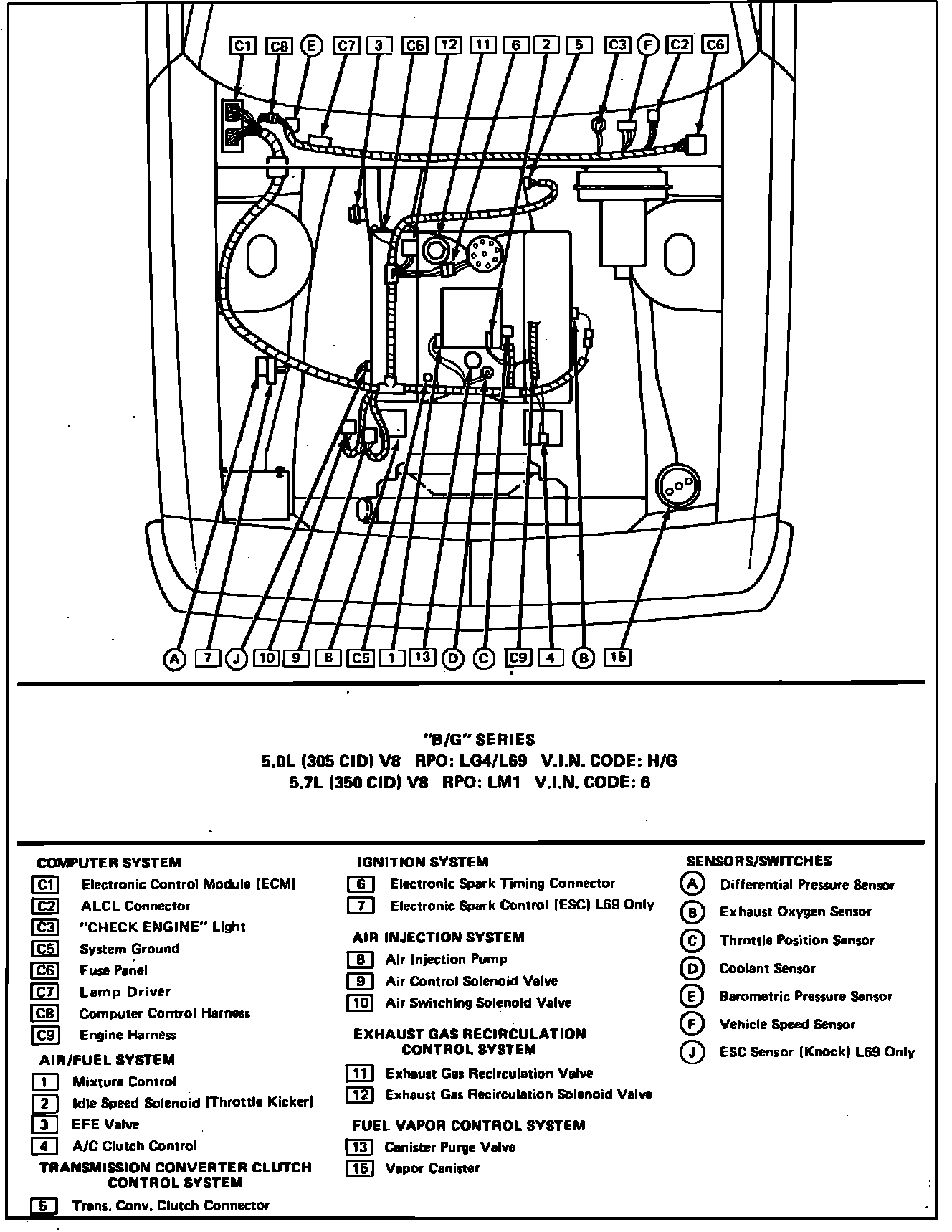 Fig. 11 Emission Control System Components. 1984 V8-305 & V8-350 Chevrolet: