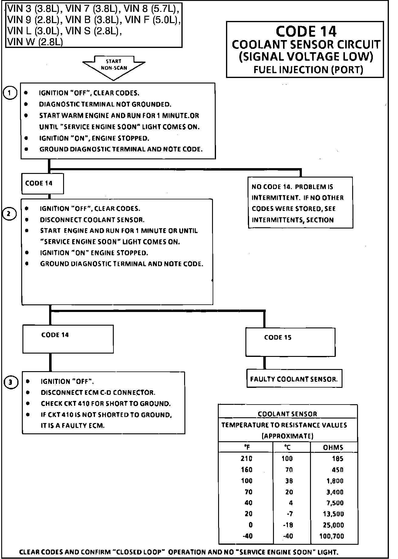 CODE 14, COOLANT SENSOR (SIGNAL VOLTAGE LOW)