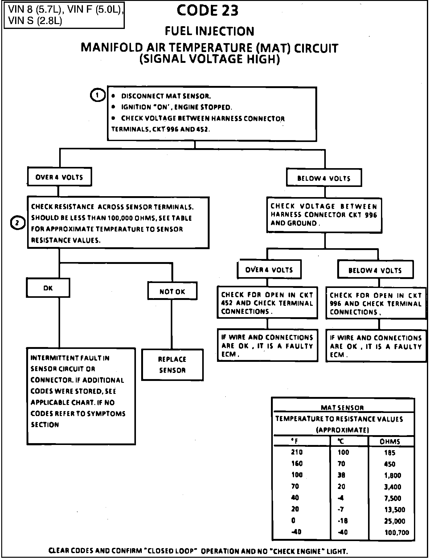 CODE 23, MANIFOLD AIR TEMPERATURE (MAT) SENSOR (SIGNAL VOLTAGE HIGH)
