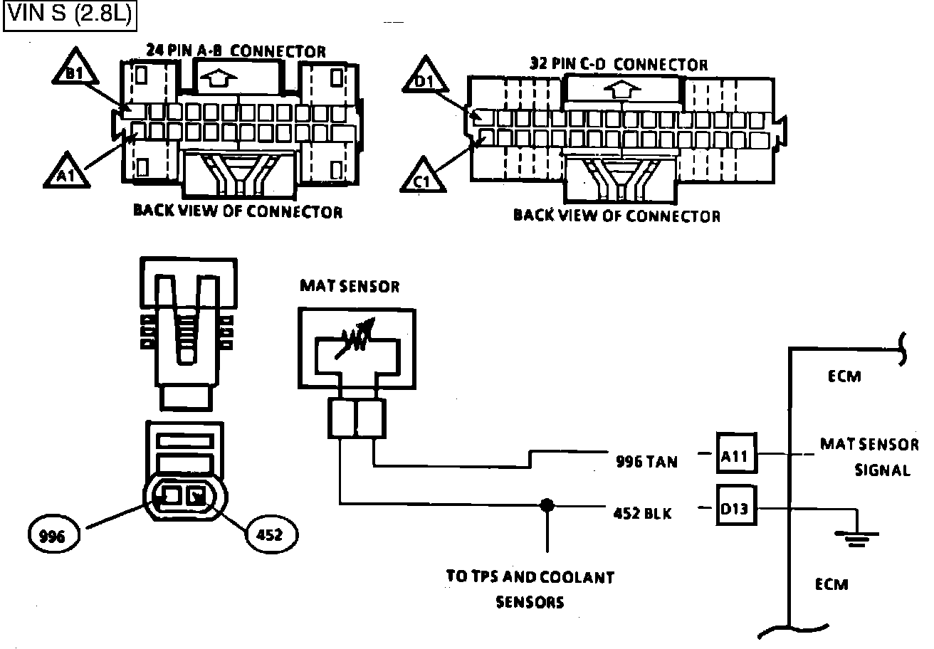 The Manifold Air Temperature Sensor uses a thermistor to control the signal-voltage to the ECM. The ECM applies a voltage on CKT 996 to the sensor. When manifold air is cold the sensor (Thermistor) resistance is high, therefore the ECM will see a high signal voltage.