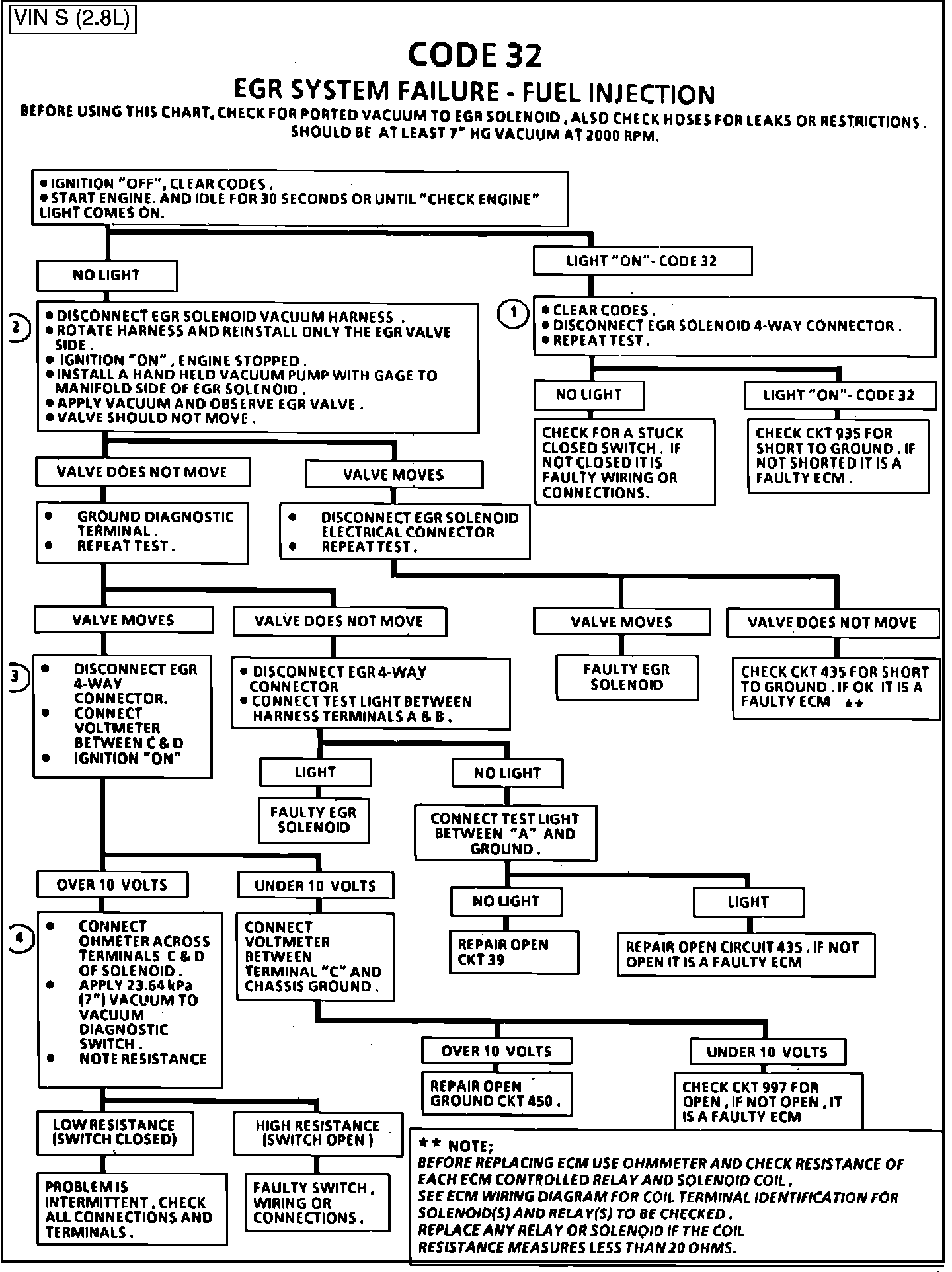 1. If the first step caused Code 32 to set, then the ECM has recognized a closed vacuum switch on start-up. This test will determine whether the EGR control valve is the cause or if the wiring or the ECM is the cause.