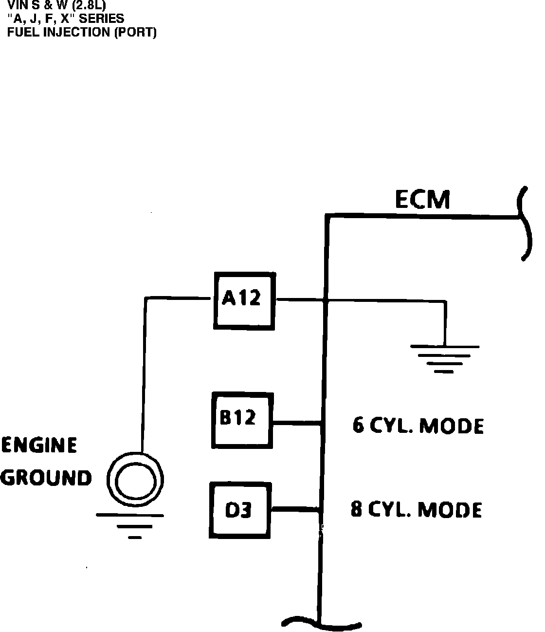 Due to the ECM being used for different engines, it is necessary for theengine application to be selected. This is done by leaving B-12 and D-3 open for a six cyclinder engine.