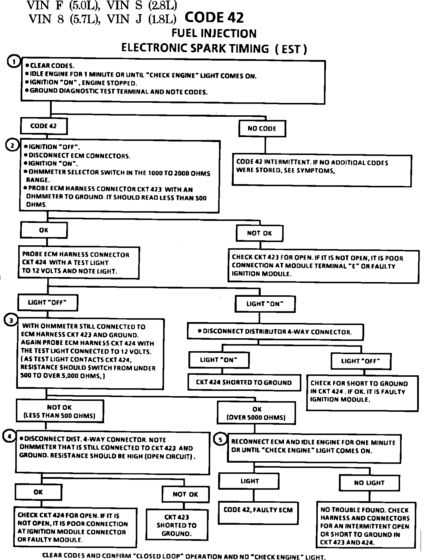 5. Confirms that Code 42 is a faulty ECM and not an intermittent in CKTS 423 or 424.
