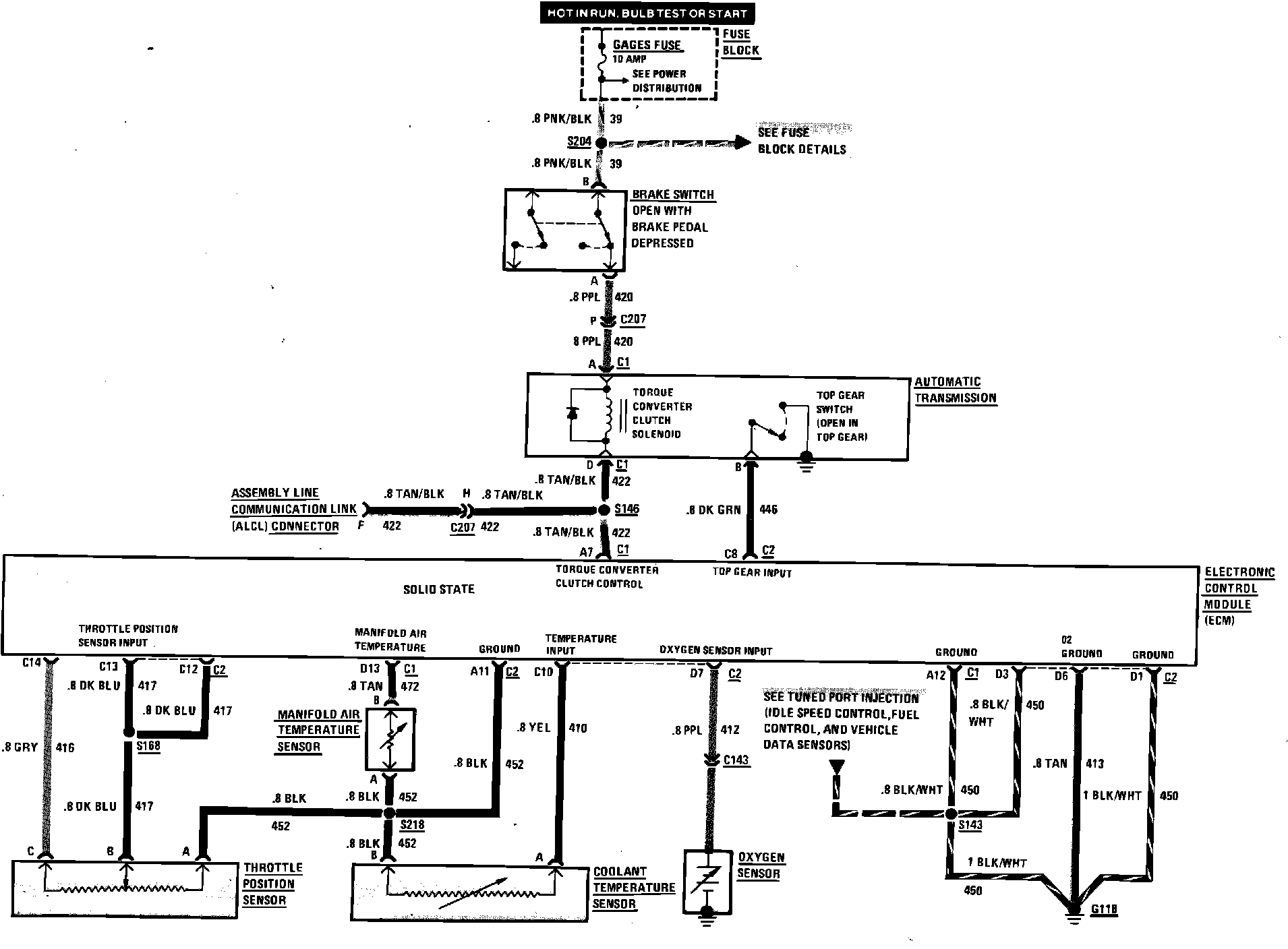 Tuned Port Fuel Injection (Engine Data Sensors & Torque Converter Clutch) Wiring Circuit: