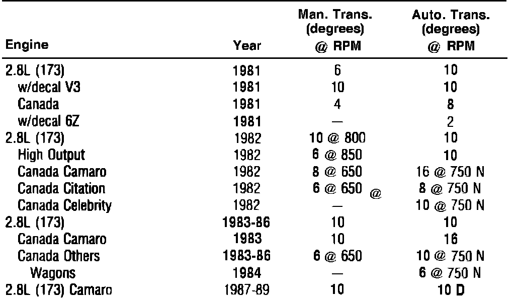 Ignition Timing: Specifications