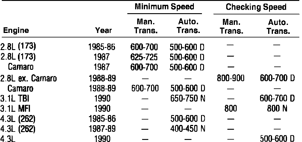 Idle Speed W/Computer Control Specifications - Fuel Injected: