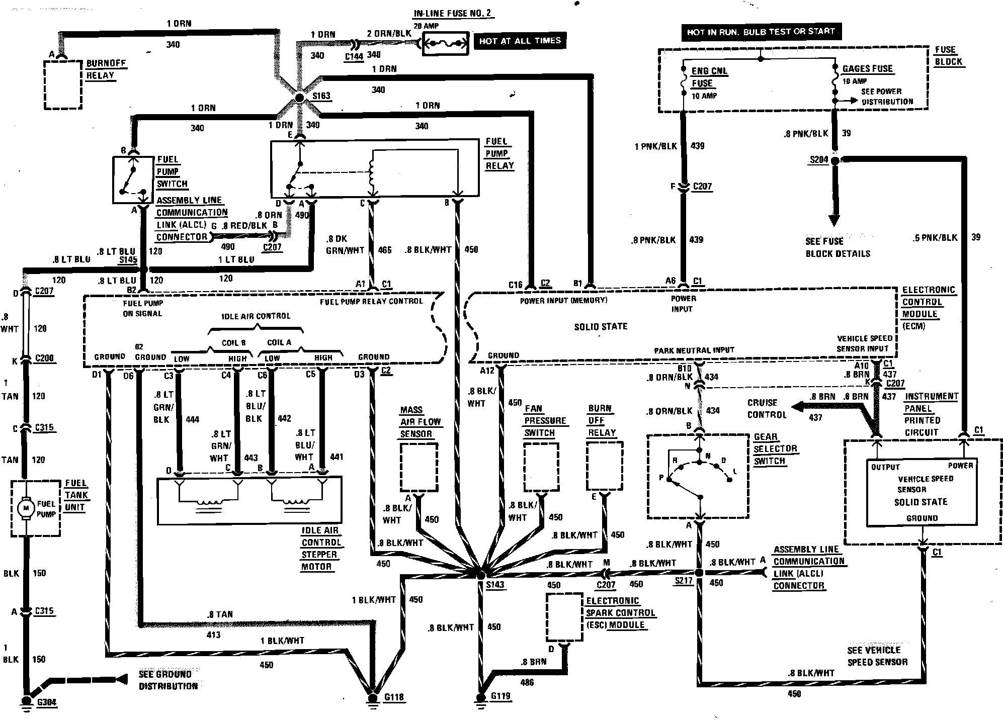 Tuned Port Fuel Injection (Fuel Control, Idle Speed Control & Vehicle Data Sensors) Wiring Circuit: