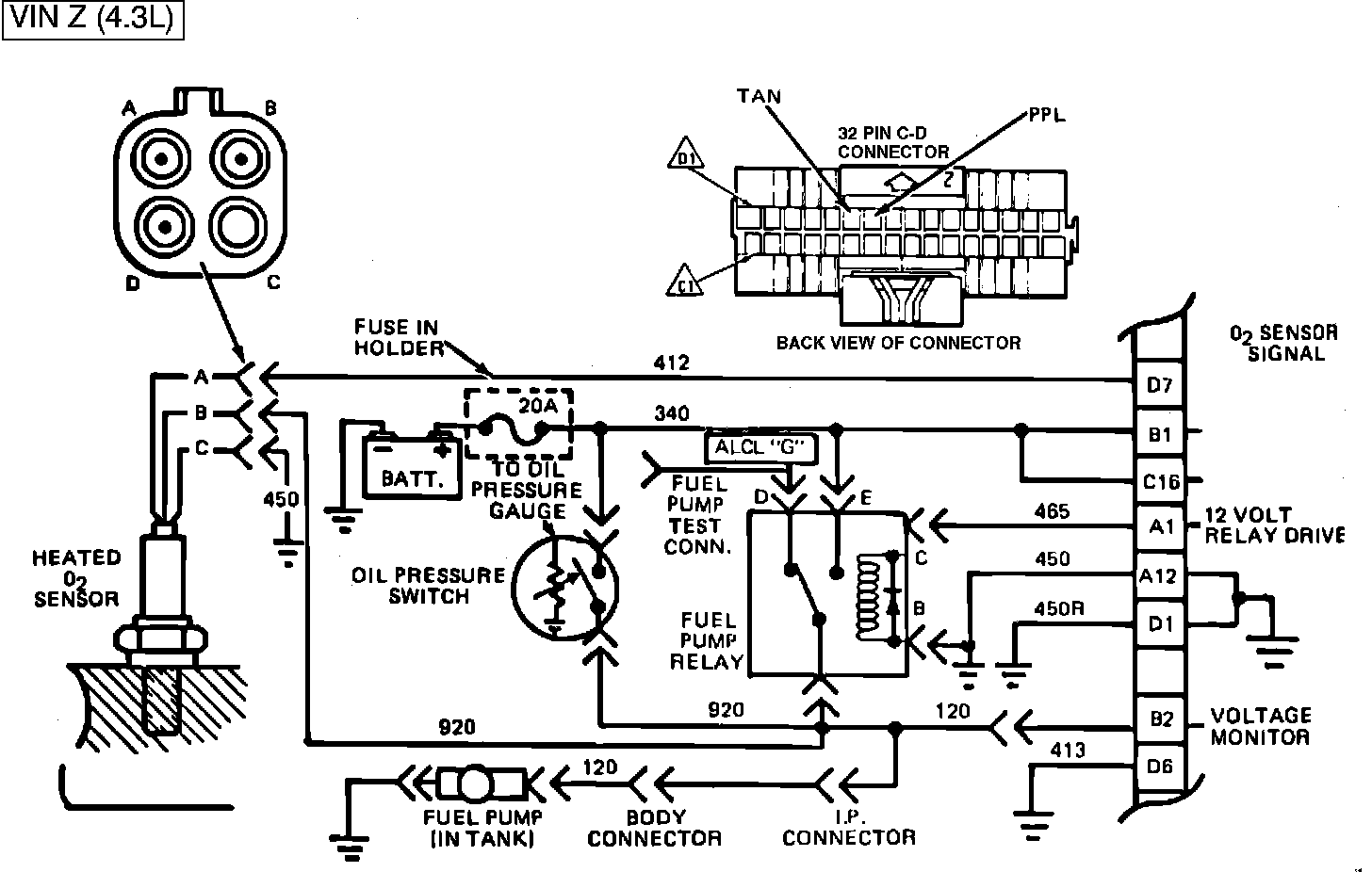 When the ignition switch is turned "ON", the Electronic Control Module (ECM) will turn "ON" the in-tank fuel pump. It will remain "ON" as long as the engine is cranking or running, and the ECM is receiving HEI distributor reference pulses.