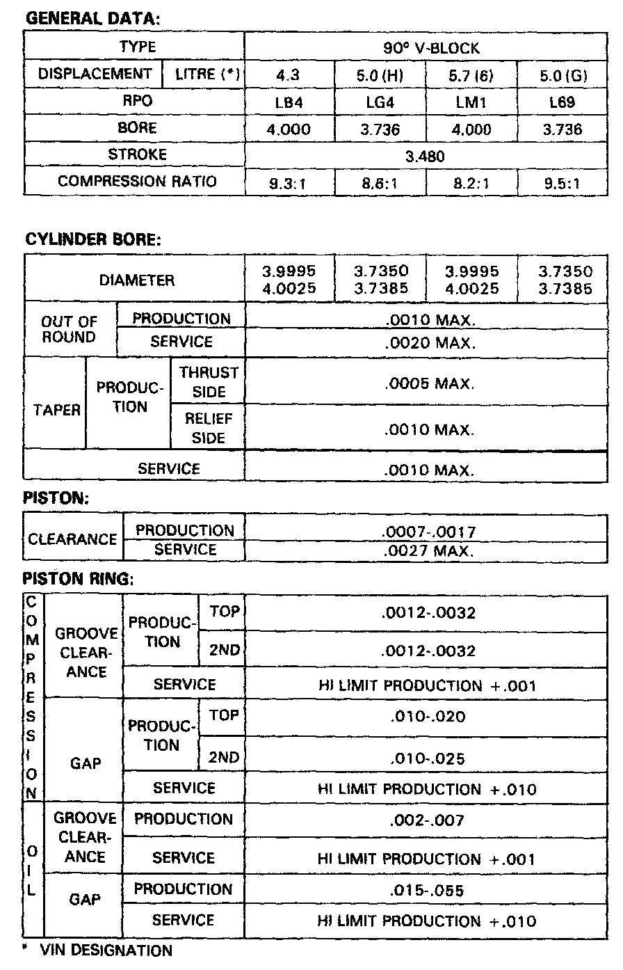 Continued Engine Specifications:
