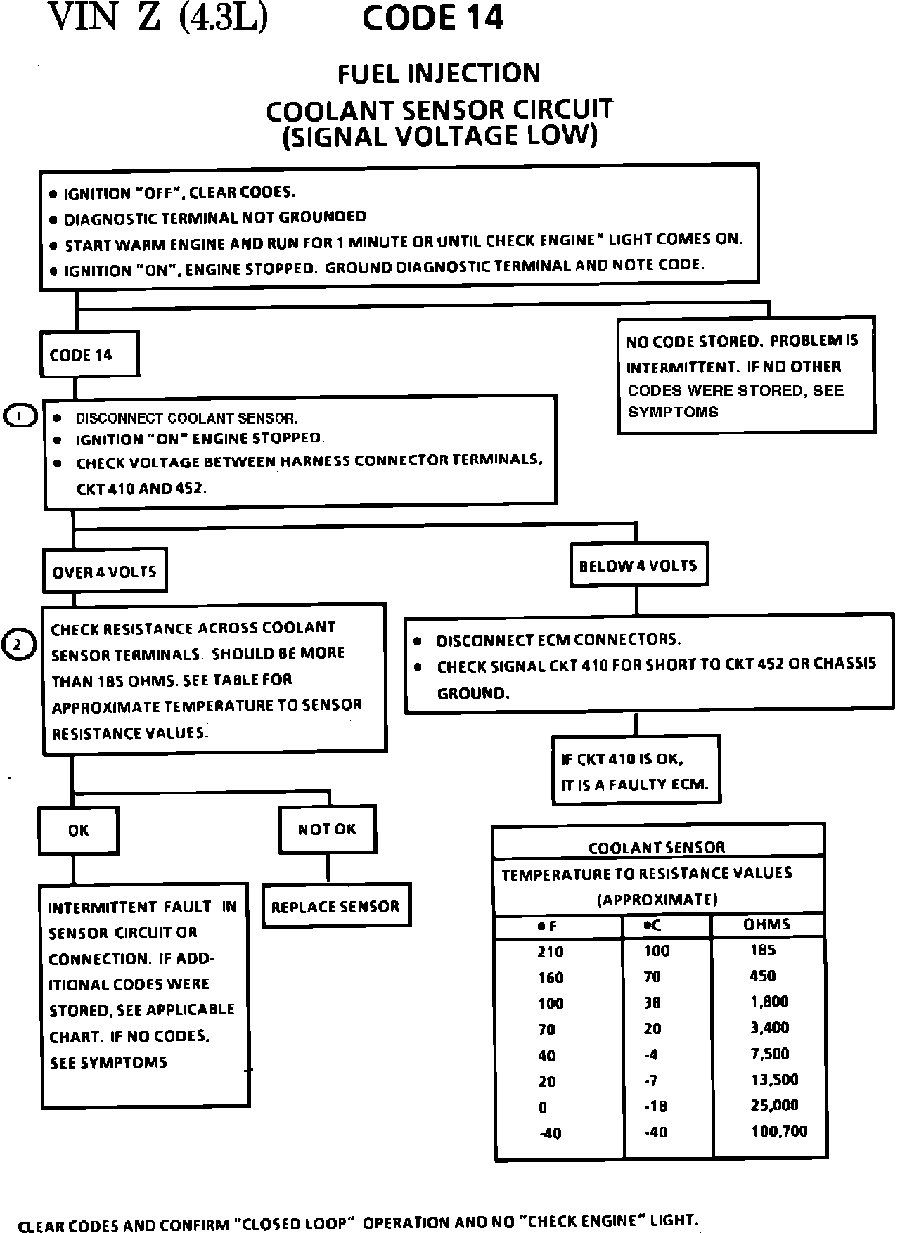 CODE 14, COOLANT SENSOR (SIGNAL VOLTAGE LOW)
