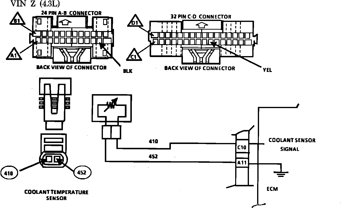 As the engine warms, the sensor resistance becomes less, and the voltage drops. At normal engine operating temperature, the voltage will measure about 1 to 1.5 volts at the ECM terminal C10.