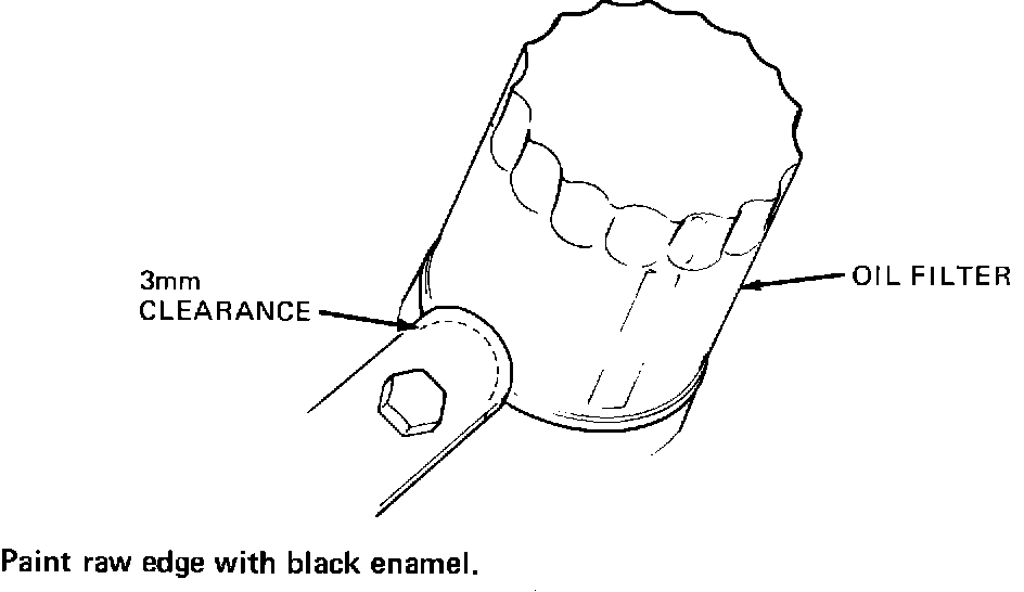 4. Using a grinding wheel, grind off end of engine mount bracket to provide a (minimum) clearance of 3mm to oil filter (refer Illustration).