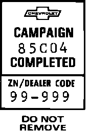 Each vehicle modified in accordance with the instructions outlined in this Product Campaign Bulletin will require a "Campaign Identification Label." Each label provides a space to include the five digit dealer code of the dealer performing the campaign service. This information may be inserted with a typewriter or ballpoint pen.