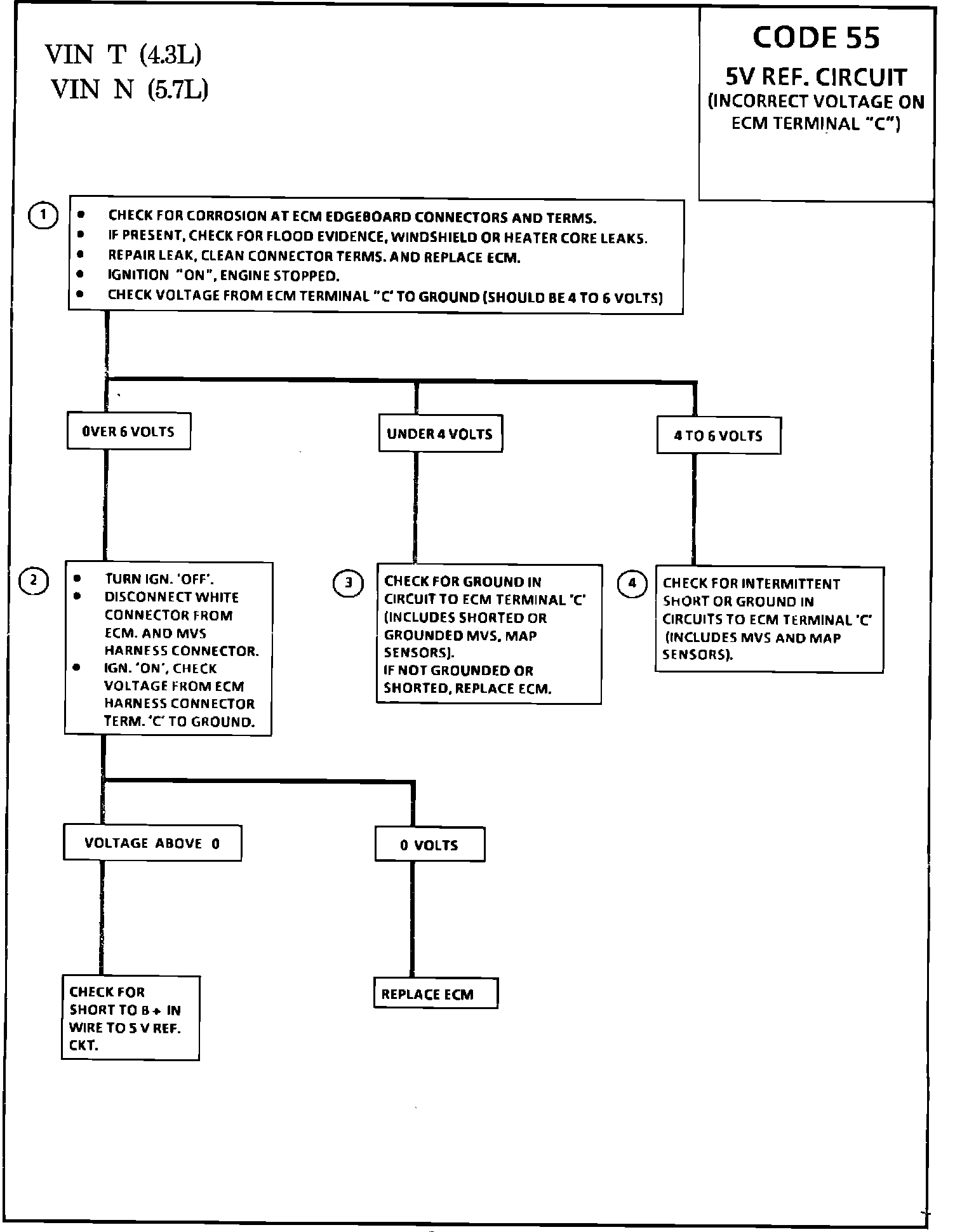 Code 55 indicates that the ECM has seen either voltage too high or voltage too low at ECM terminal "C".