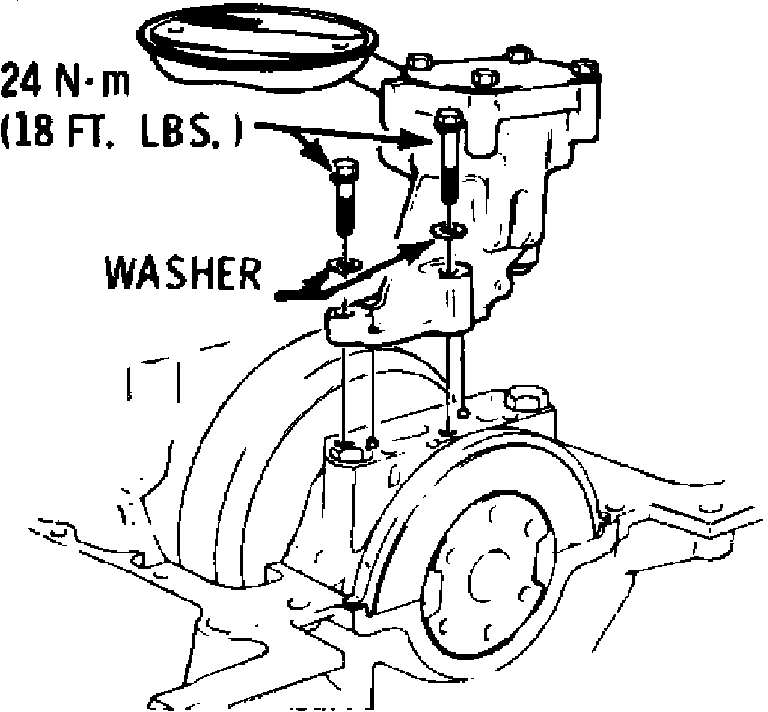 4. Reverse procedure to install. Torque attaching bolts to 18 ft. lbs.