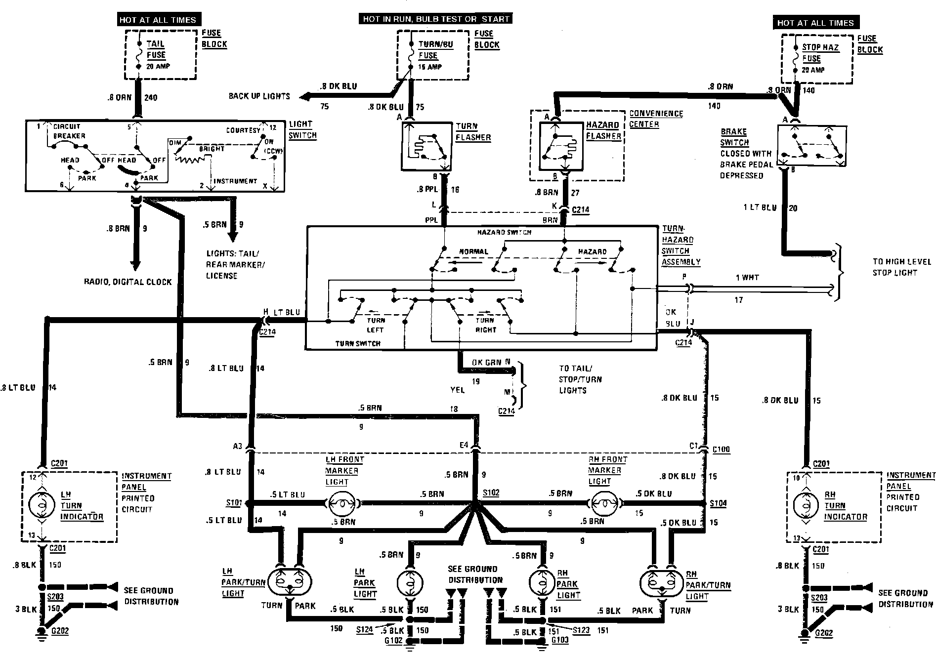 Fig. 129 Front Marker, Front Park, Hazard, Stop & Turn Signal Wiring Circuit Part 1 of 2: