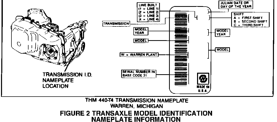 FIGURE 2TRANSAXLE MODEL IDENTIFICATION NAMEPLATE INFORMATION:
