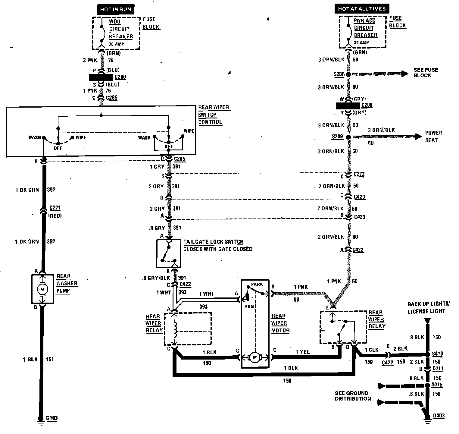 Fig. 256 Rear Wiper/Washer Wiring Circuit: