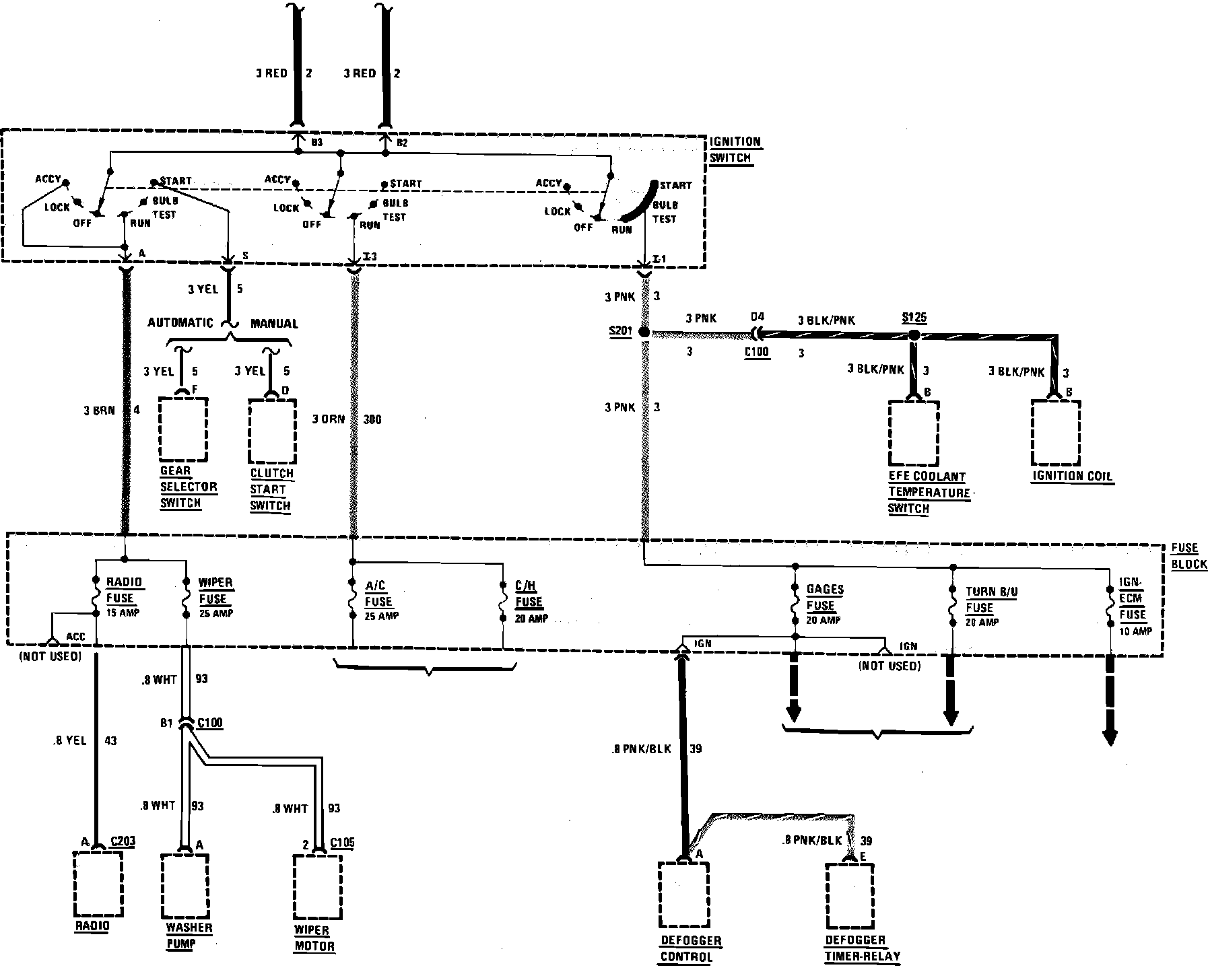 Fig. 26 Power Distribution Wiring Circuit, Gas 1985 Chevette & T1000: