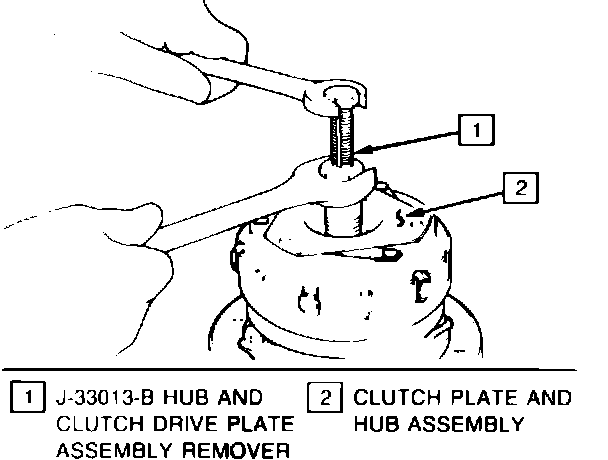 2. Using tool J-33013-B, remove clutch plate and hub assembly and shaft key, Fig. 3.