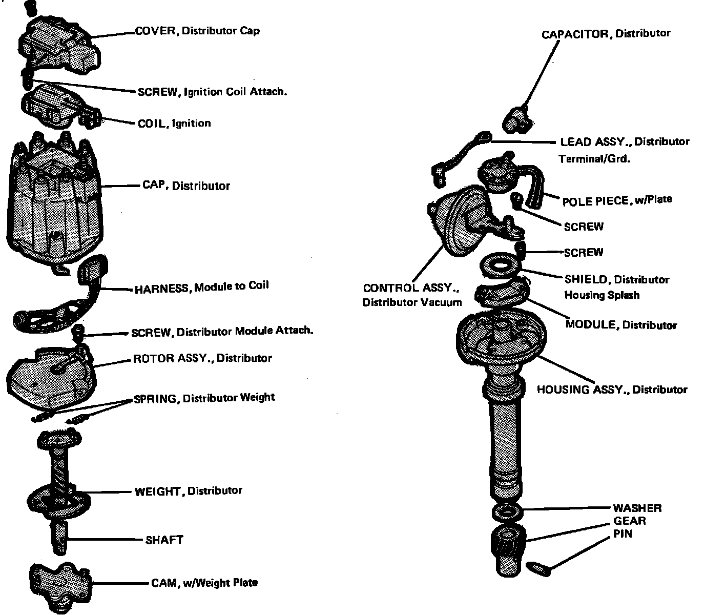 Fig. 14 Exploded view of H.E.I. distributor (Typical).: