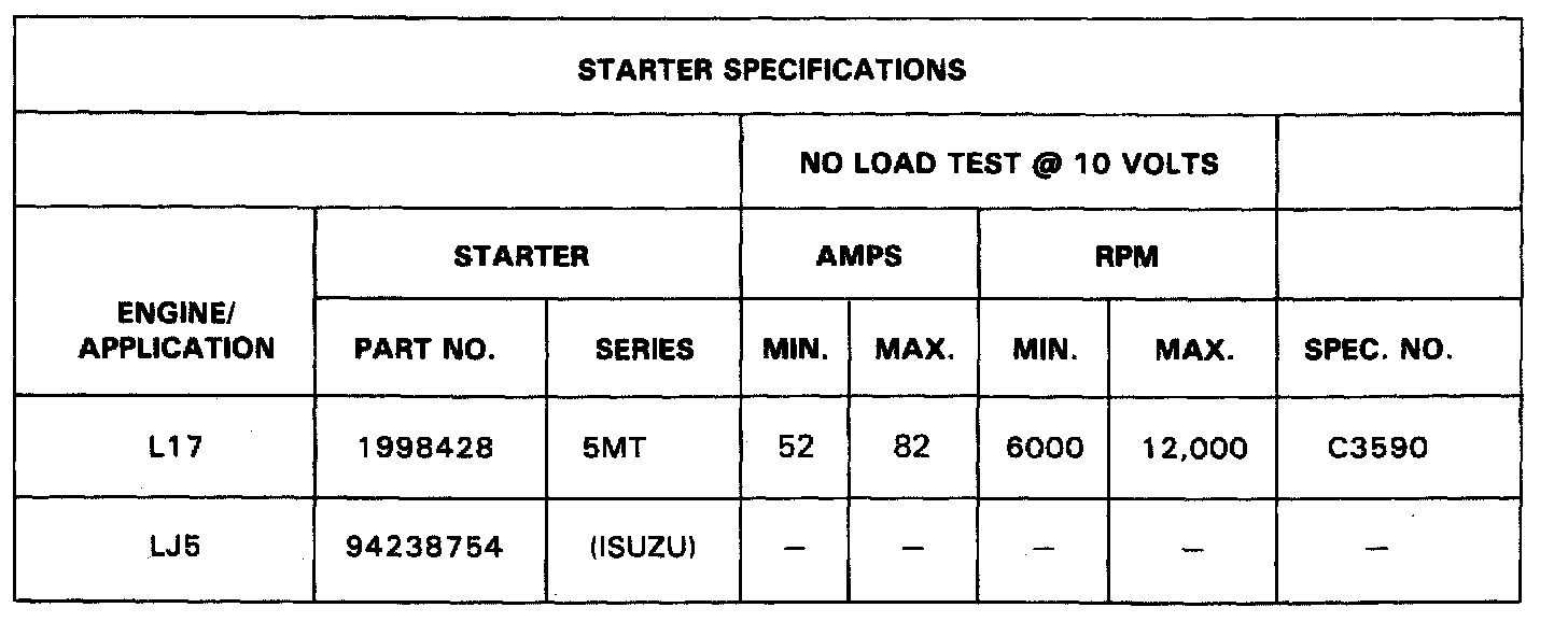 STARTER SPECIFICATIONS