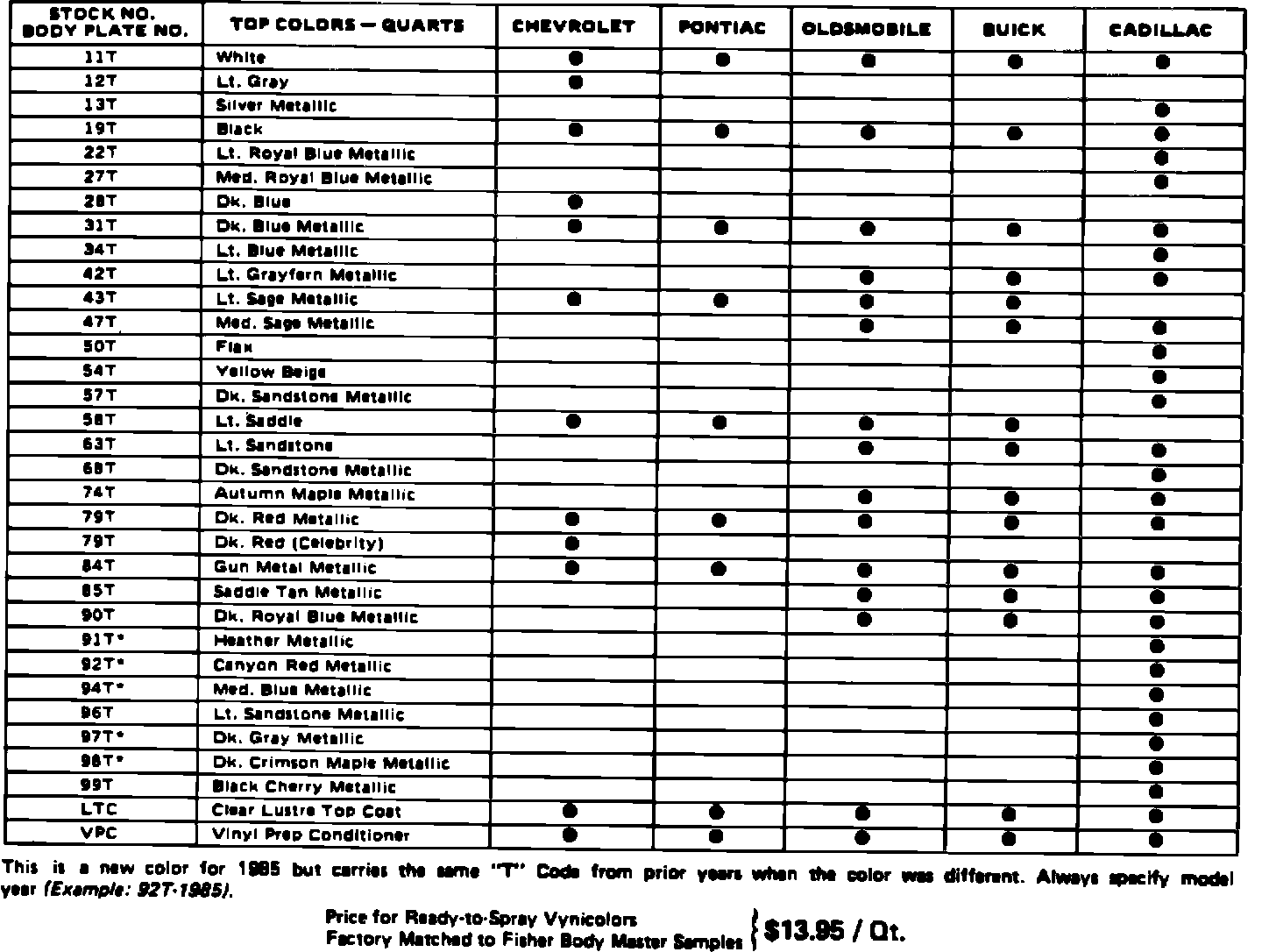 COLORPAK KITS for 1985 GM VINYL TOPS