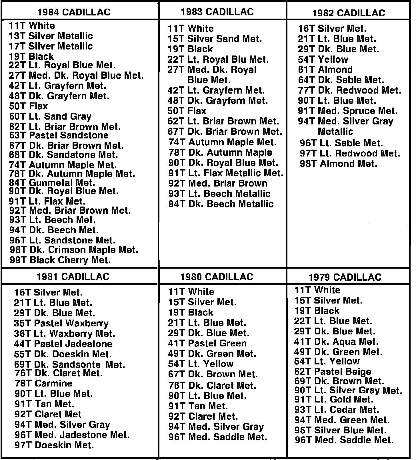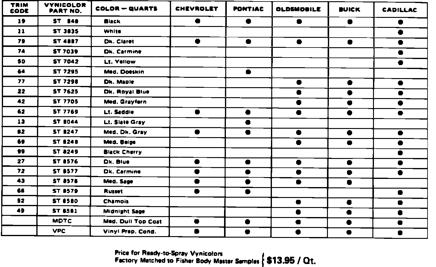Includes all items shown above for each GM Div. - Factory Matched Colors in Quarts - Ready-to-Spray