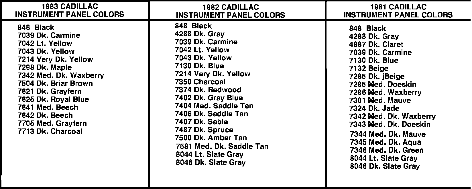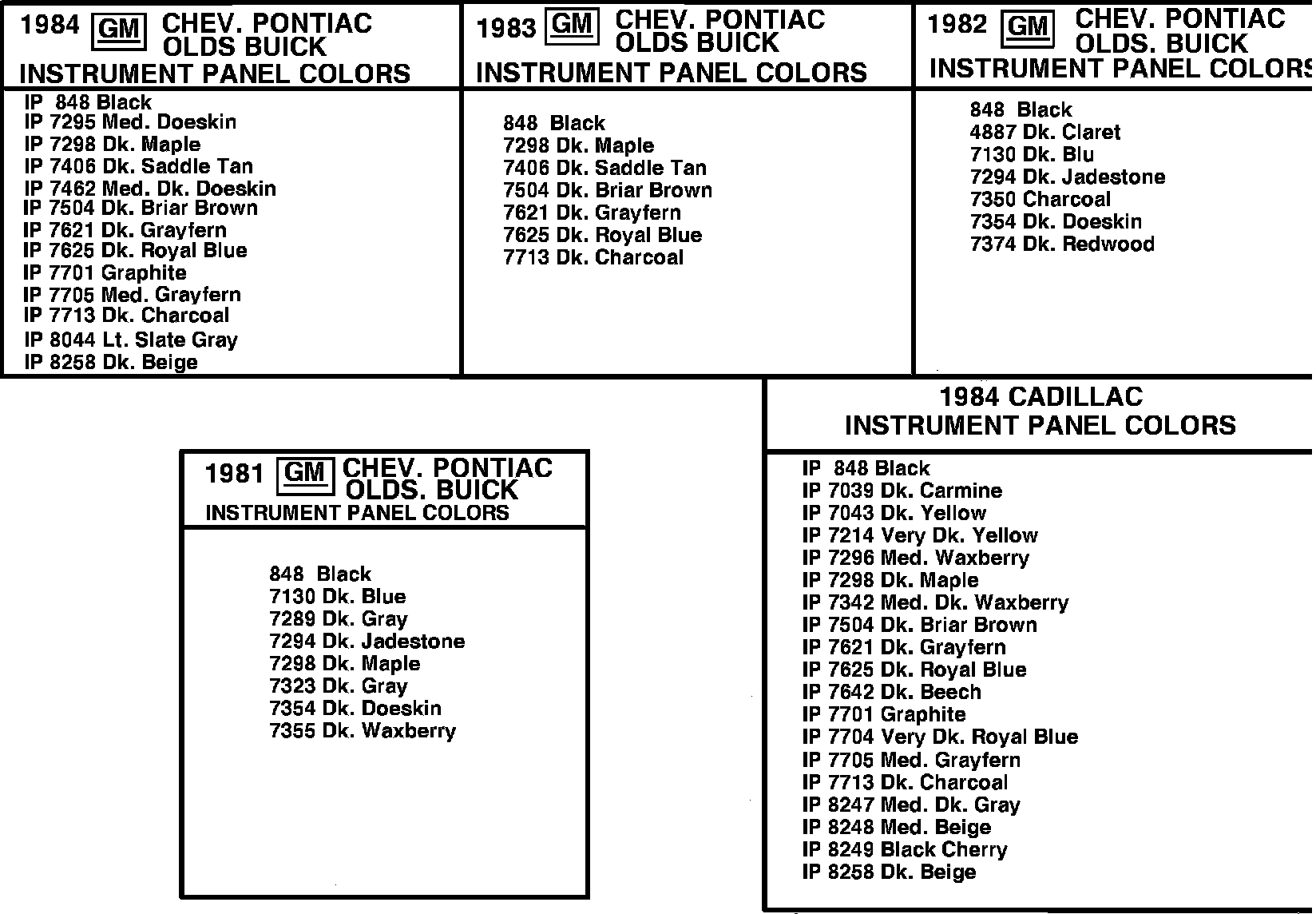 COLORPAK KITS for 1985 GM INSTRUMENT PANELS Includes all items shown above for each GM Div. - Factory Matched Colors in Quarts - Ready-to-Spray